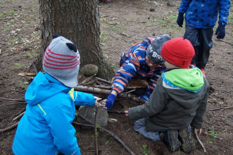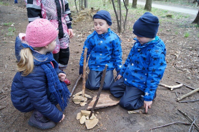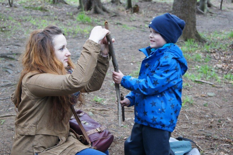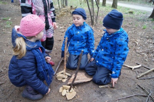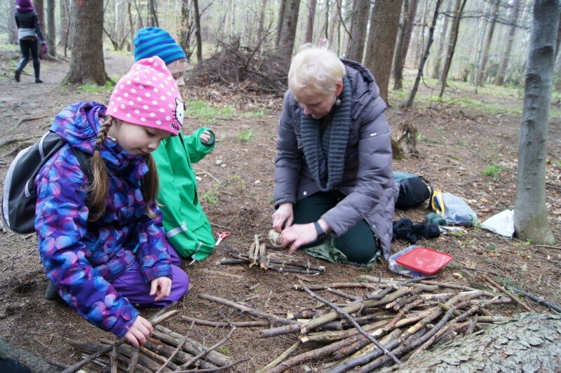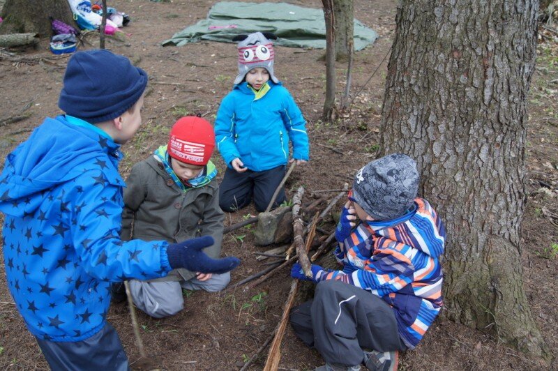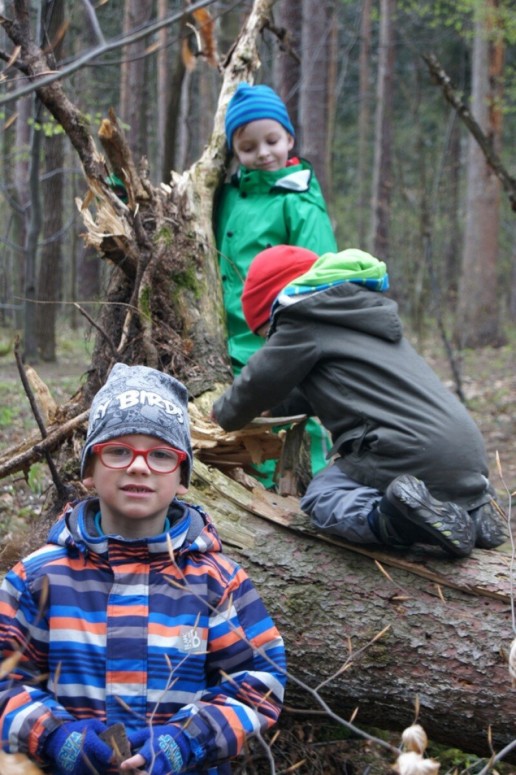 Podczas kwietniowego wyjazdu na Forest School dzieci przygotowywały się do wykonania zadania na konkurs ekologiczny. Praca w grupach pozwoliła na doskonalenia umiejętności społecznych, trzeba było podejmować trudne decyzje w grupie unikając konfliktów i kłótni. Dzieci miały za zadanie zgromadzić potrzebne materiały do wykonania ekologicznego krzesła. Zgodnie z zasadą obowiązującą na każdym wyjeździe, można było zbierać tylko te rzeczy, które już leżały na ziemi. Nie zrywaliśmy żadnych gałęzi, nie niszczyliśmy krzaków ani drzew, dbając o budzącą się do życia przyrodę. Podczas zajęć dzieci wykazały się olbrzymią kreatywnością z zakresu inżynierii, konstruując „przy okazji” swoje własne pomysły na wykorzystanie patyka i sznurka. Tak powstały wspaniałe łuki i wędki. Zgromadzone materiały zostały spakowane i zawiezione do szkoły gdzie uczniowie przystąpili do tworzenia prac konkursowych. Konkurs trwa. Nie możemy się już doczekać efektów, czyli wspaniałych ekologicznych krzeseł.