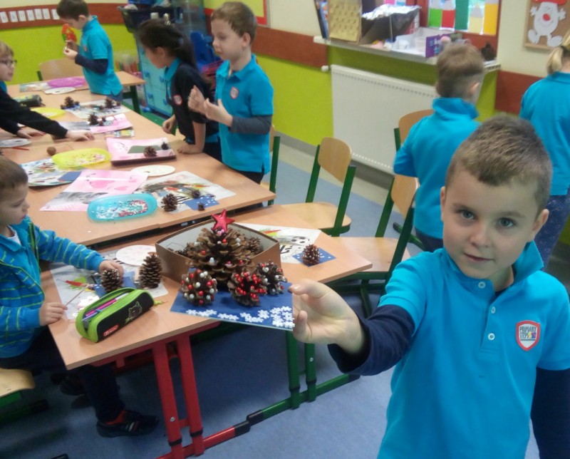 Podczas grudniowych zajęć klasa 1A oprócz ćwiczeń w liczeniu i pisaniu zajmowała się także przygotowywaniem ozdób i dekoracji świątecznych. Korzystaliśmy również ze sprzyjającej aury i każdą wolną chwilę spędzaliśmy na świeżym powietrzu.