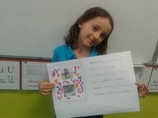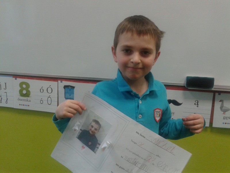 Na zajęciach z języka hiszpańskiego nasi najmłodsi uczniowie Mia, Michał i Mikołaj przygotowali oraz wygłosili piękne prezentacje swojej osoby. Z pewnością, kiedy uda im się pojechać do Hiszpanii nie będą mieli problemu aby się przedstawić. Nasi podopieczni z klasy 2B i 2A poznali historię zabawnej Myszki Pérez, która w Hiszpanii cieszy się wielką popularnością wśród najmłodszych, jako że to właśnie ona zbiera mleczne ząbki i w zamian pod poduszką zostawia mały upominek. Zainspirowani jej postacią postanowiliśmy stworzyć jej podobiznę w oryginalny sposób, co ilustrują poniższe zdjęcia. W klasach drugich po raz pierwszy powtórkę z rozdziału zrealizowaliśmy w oryginalny sposób, tworząc tzw. drzewo słów. Uczniowie na liściach zapisywali nowe słówka, które ostatnio poznaliśmy i przylepiając je do narysowanych na brystolu gałęziach stworzyli małe dzieło sztuki. W klasie 3A ostatnio czujemy się jak mali podróżnicy. Poznajemy nazewnictwo zwierząt i ich miejsca zamieszkania na mapie i w terenie. Staramy się opisywać ich wygląd oraz upodobania żywieniowe. Temat sprzyjał realizacji rozgrywek, podczas których łatwiej było przyswajać nowe słownictwo i dowiedzieć się sporo ciekawostek.